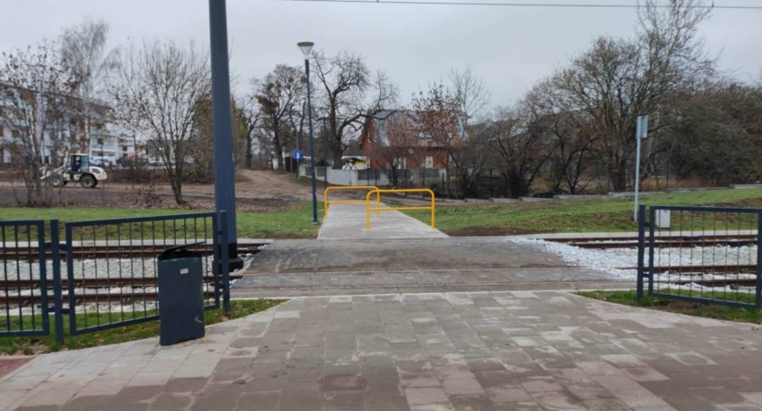 Mniej więcej w połowie drogi między przystankami Łódzka i Piotrkowska znajduje się przejście dla pieszych przez tory tramwajowe, pozwalające wejść na Nową Warszawską z ulicy Białostockiej. Choć przeprawa ta jest potrzebna, to projektanci zaprojektowali ją dość niefortunnie.