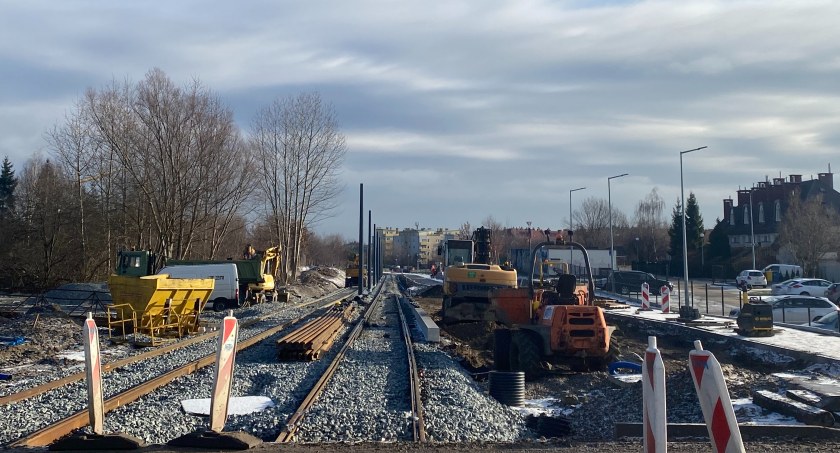 Stosunkowo zimna i w niektóre dni śnieżna zima nie zatrzymała budowy. Prace cały czas są wykonywane, choć nieco wolniej niż w ciepłym półroczu. Nieustannie trwają prace na skrzyżowaniu al. Havla z ulicą Łódzką i Nową Warszawską. Tutaj trwa między innymi układanie nowych chodników, przygotowywanie fundamentów pod nowe słupy trakcyjne i budowa płyty betonowej, na której montowane są rozjazdy. Ponadto trwa budowa peronów.