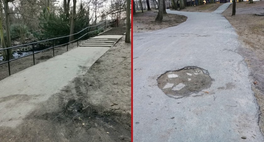 Zimowy okres, kiedy w Parku Oliwskim można podziwiać świąteczne iluminacje, wymaga od spacerowiczów dużej ostrożności. Gdy zapada zmrok, okazuje się, że niektóre niebezpieczne fragmenty ciągów spacerowych są nieoświetlone. Szczególnie należy uważać na przykład na schodach przy wodospadzie, które są nie tylko nierówne, ale przede wszystkim nieoświetlone. Patrzeć pod nogi, także w dzień, trzeba również na części asfaltowych alejek. W ciągu dziesiątek lat ciągi spacerowe uległy zużyciu i częściowemu zniszczeniu. Na części alejek pojawiły się dziury, utrudniające poruszanie się części odwiedzających.