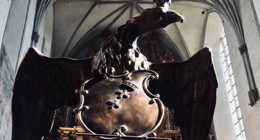 Autorem cennego pulpitu na kancjonały wykonał w 1764 roku w Gdańsku Ernst Friedrich Koch. Orzeł pierwotnie w szponach trzymał herb Gdańska i berło. Stanowił on istotny element wystroju bazyliki św. Mikołaja. Aż do wybuchu II Wojny Światowej stanowił symbol Rzeczypospolitej i był przez Polaków ozdabiany kwiatami. Po wojnie był schowany za ołtarzem głównym, a w ostatnich latach zabytek w kilku częściach przechowywano w krypcie oraz zakrystii.