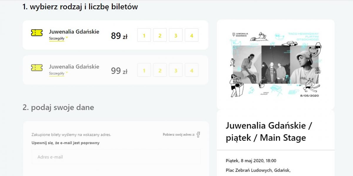 Kilka dni temu zapytaliśmy Fundację Gdańską o możliwość wstrzymania sprzedaży biletów. Ta odesłała nas do marcowego komunikatu w którym czytamy: "Jeżeli istnieje choć 1% szansy, że do tego czasu sytuacja się ustabilizuje, to będziemy gotowi razem z artystami, firmami technicznymi oraz ich pracownikami stałymi i dorywczymi (którzy teraz są w kryzysie), żeby zrealizować Juwenalia Gdańskie."