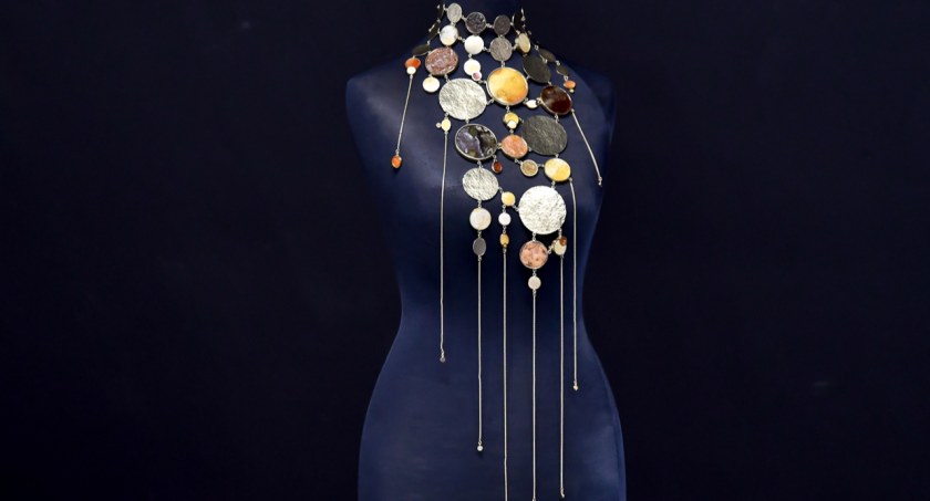 – Projektant tworzy przede wszystkim z myślą o użytkowniku i jego potrzebach. Kiedy jego dzieło może być podziwiane w przestrzeniach muzealnych, to jest to dla niego dodatkową nagrodą i ogromnym zaszczytem. Wraz z Tomaszem Ołdziejewskim mieliśmy okazję stworzyć nieszablonowy naszyjnik. – mówiła Anna Orska, projektantka biżuterii – Użytkownik może go nosić na 4 sposoby. Zarówno na torsie jak i na plecach, ale w razie potrzeby może eksponować również stronę przylegającą do odzienia. W ten sposób chcieliśmy oddać hołd różnorodnej naturze bursztynu.