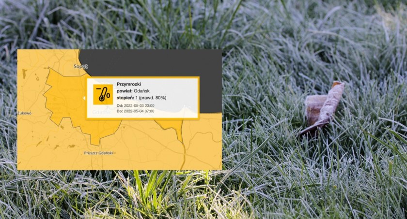 Synoptyk IMGW prognozuje spadek temperatury powietrza do około -1 stopnia, przy gruncie do minus 3 stopni. Prawdopodobieństwo wystąpienia tego zjawiska określono na 80 procent.