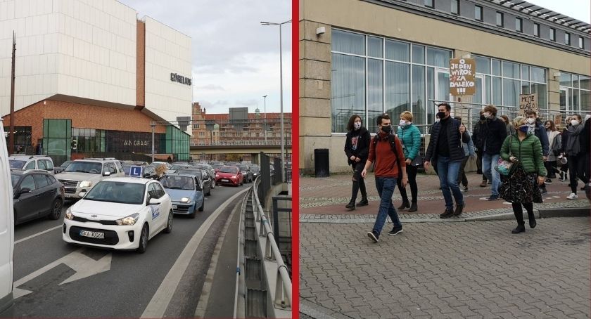 Spacerujący protestujący dotarli już do Hali Olivia. Korek utrzymuje się od Galerii Bałtyckiej do Piastowskiej.