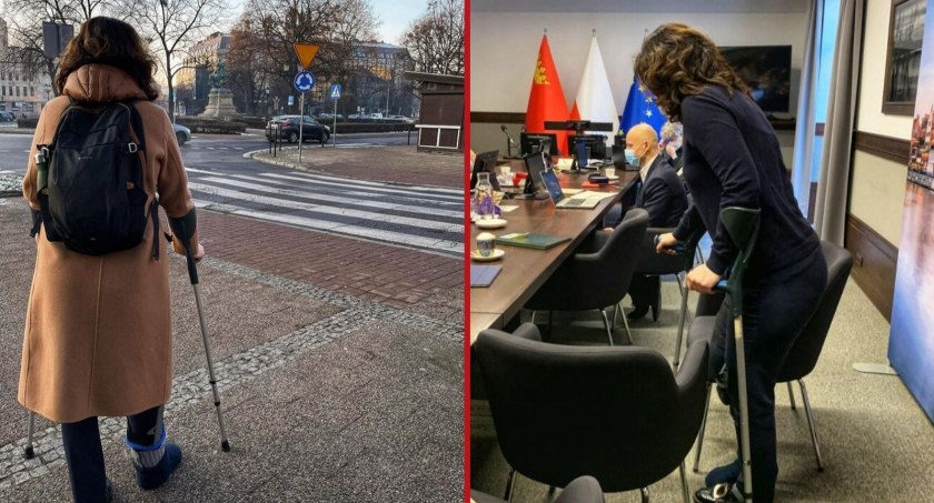 Dziś rano prezydent Gdańska poinformowała w mediach społecznościowych o swoim powrocie do pracy. Wpisowi towarzyszyły trzy zdjęcia przedstawiające Aleksandrę Dulkiewicz poruszającą się o kulach.