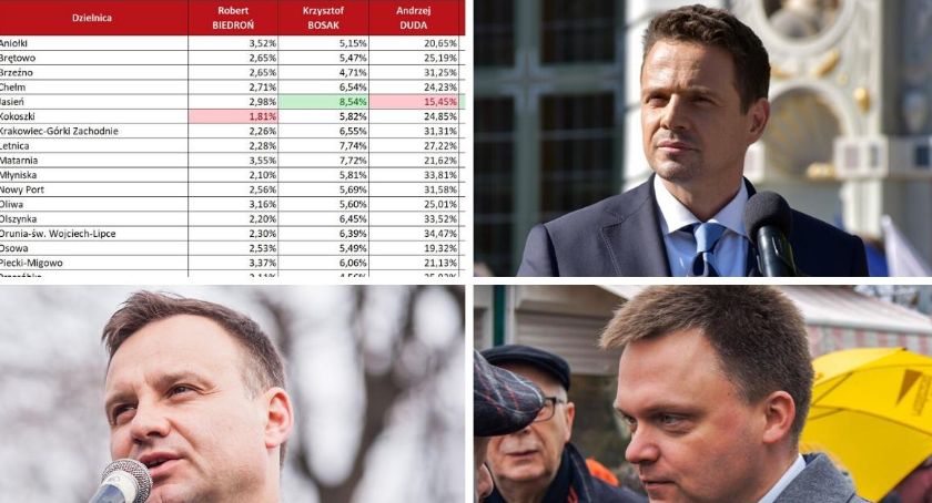 Kolejnym kandydatem z rankingu miejskiego jest Robert Biedroń. Kandydat Lewicy najwięcej wyborców przekonał we Wrzeszczu Górnym (4,17%), najmniej zaś w Kokoszkach (1,71%)