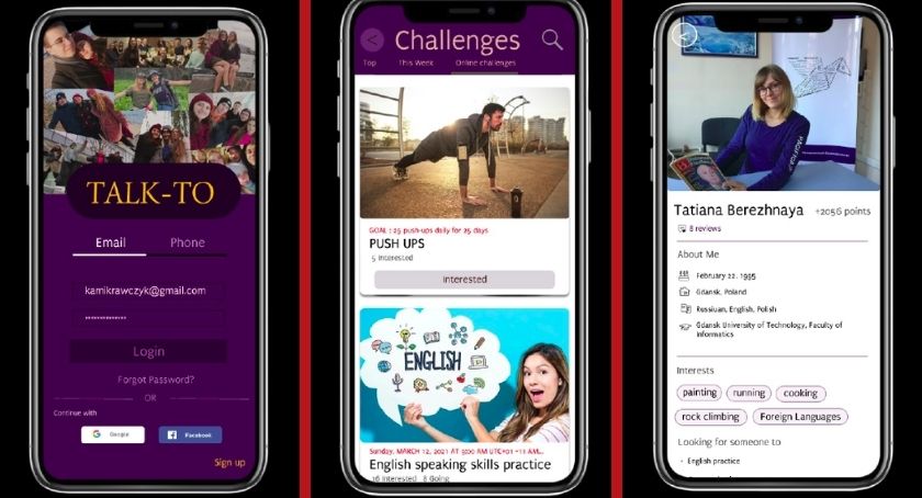 Studenci Wydziału Zarządzania UG (Klara Dargacz, Irina Frolova oraz Hubert Kołcz) tworzą aplikację Talk-to, która z założenia ma odpowiadać na potrzeby osób chcących aktywnie uczestniczyć w życiu społecznym, które z pewnych powodów nie mają takiej możliwości.