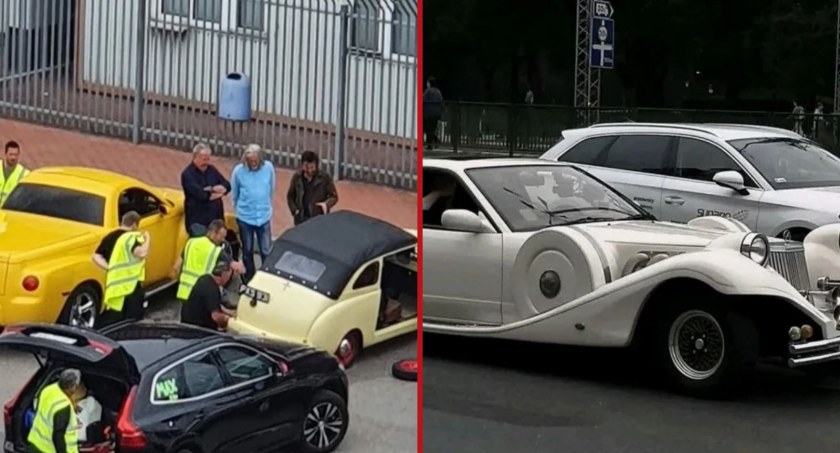 Jak wynika z relacji internautów, prezenterom towarzyszyła ekipa filmowa. Wraz z dziennikarzami w Trójmieście pojawiły się również nietypowe auta - to najprawdopodobniej Mitsuoka Excalibur, Chevrolet SSR i Crosley Convertible.