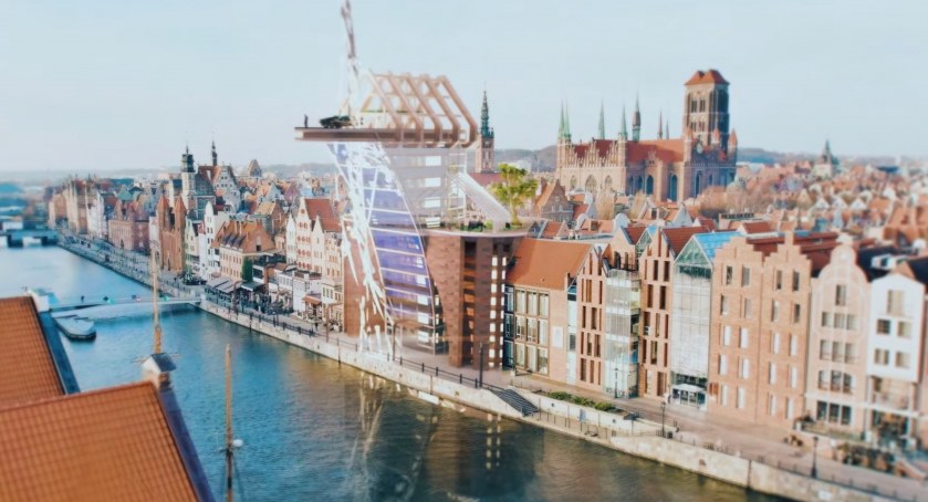 Co gdyby nie remontować zabytku, a całkowicie zmienić jego funkcję. Śmiałą, futurystyczną wizję zaprezentował Dawid Herda. Artysta pokazał, jak gdański żuraw mógłby funkcjonować w mieście przyszłości.