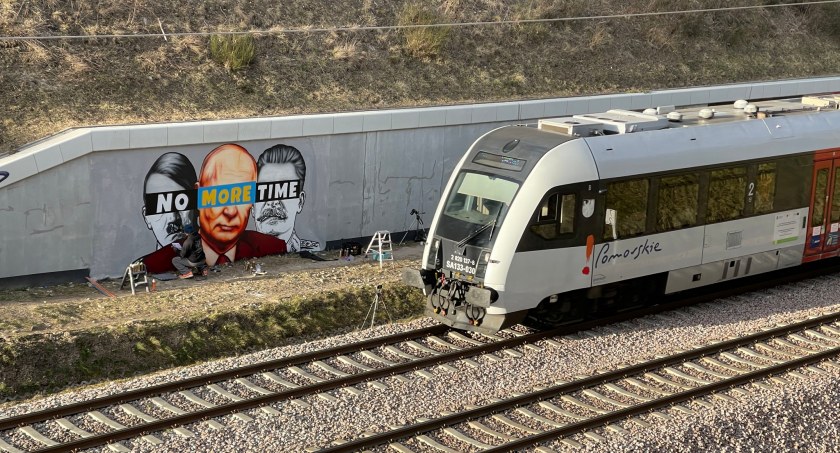 Antywojenny mural z mocnym przekazem pojawił się na na murze oporowym Pomorskiej Kolei Metropolitalnej na Jasieniu. Prezentuje podobizny byłych przywódców ZSRR oraz III Rzeszy w towarzystwie obecnego prezydenta Rosji. Muralowi towarzyszy hasło "No more time".