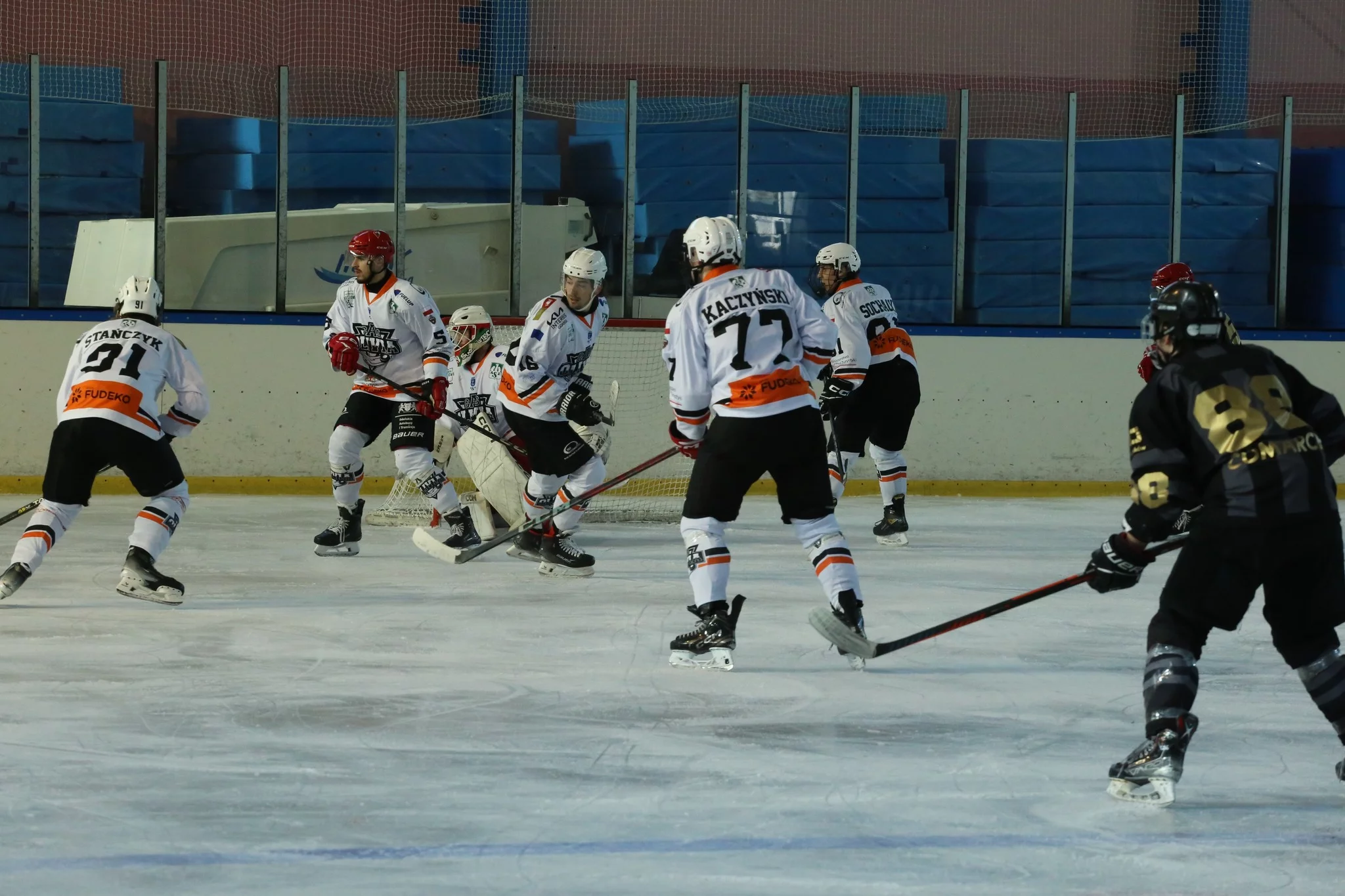 Zanim Fudeko rozegrało kluczowy mecz w walce o awans do play-offów, na lodową taflę po raz ostatni w tym sezonie wybiegli Stoczniowcy. Wyjątkowo spotkanie rozegrano w… Warszawie. To efekt współpracy drużyny Kosteckiego ze stołeczną Legią, na mocy której gdańszczanie w kampanii 2024/2025 mieli w kadrze kilkunastu zawodników ze stolicy Polski oraz - zgodnie z umową – zagrać jeden „domowy” mecz mieli zagrać na Lodowisku COS w Torwarze. Tak się złożyło, że w ten weekend Hala Olivia były zajęta ze względu na zawody PGE Hevelius Cup 2025 (w łyżwiarstwie synchronicznym), zatem jednorazowo przenieśli się na inny obiekt.