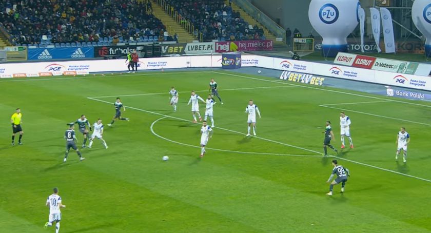 W pierwszych minutach dobrymi interwencjami popisał się Dusan Kuciak przy strzałach Piaseckiego i uchronił Biało-Zielonych od straty bramki. Chwilę później bramkarz gości już nie miał szans przy obronie strzału Sitka z 25 metrów. Mak po podaniu Żyro z własnej połowy przyjął podanie przed polem karnym i podał do nadbiegającego z głębi pola Sitka, który przelobował Słowaka i strzelił bramkę na 1:0.