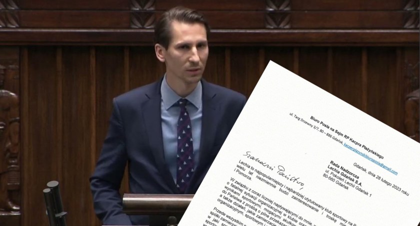 Kacper Płażyński wykazał zaniepokojenie związane z sytuacją Lechii Gdańsk. Poseł wystosował pismo do Rady Nadzorczej Lechii Gdańsk z prośbą o wytłumaczenie ostatnich złych wyników klubu oraz doniesieniach o bałaganie organizacyjnym panującym w klubie. Poniżej przedstawiamy treść pisma, którą wystosował polityk.