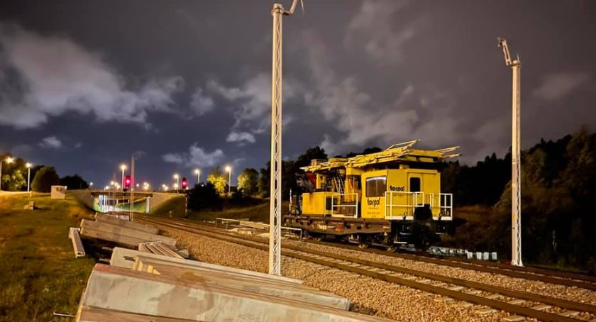 Prace na tym odcinku weszły w kolejny etap. Przedwczoraj na linię PKM dotarł pociąg sieciowy firmy Torpol, która realizuje inwestycję. Wczoraj z pomocą specjalistycznego sprzętu wykonawca rozpoczął zbrojenie ustawionych słupów trakcyjnych oraz montażem podwieszeń sieci trakcyjnej.