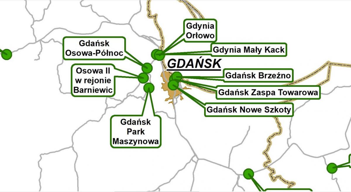 Aż trzy wskazane przez ministerstwo przystanki kolejowe znajdują się na nieużywanej od lat linii SKM z Gdańska Głównego do Nowego Portu. Chodzi o stacje: Gdańsk Brzeźno, Gdańsk Nowe Szkoty oraz Gdańsk Zaspa Towarowa (Gdańsk Brzeźno). Pociągi SKM po raz ostatni po tej trasie pojechały 24 czerwca 2005 roku. Połączenia zostało zlikwidowane z powodu bardzo małego zainteresowania pasażerów.