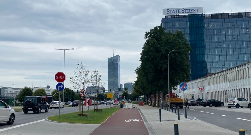 Śródmieście, al. Armii Krajowej. Wybudowany fragment drogi rowerowej, który ma stanowić początek przyszłej ekostrady