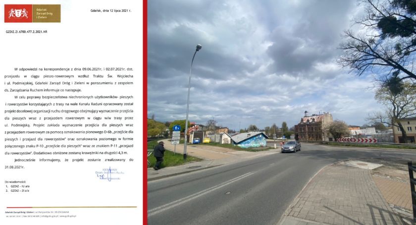 Warto wspomnieć, że trasa rowerowa wzdłuż kanału Raduni jest jedną z najbardziej uczęszczanych. Dla przykładu wczoraj przejechało tamtędy prawie 2000 osób. Rowerzyści dojeżdżają z niej do Pruszcza, Oruni Górnej czy Chełmu. Dzięki inwestycji przejazd przez ul. Podmiejską będzie bezpieczniejszy i bardziej komfortowy.