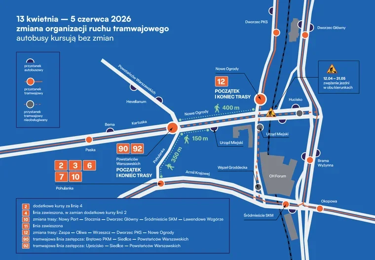 Zmiany obejmą m.in. linie 2, 4, 10, 11 i 12. Pojawią się także linie zastępcze 90 i 92, które mają usprawnić komunikację w czasie trwania inwestycji.