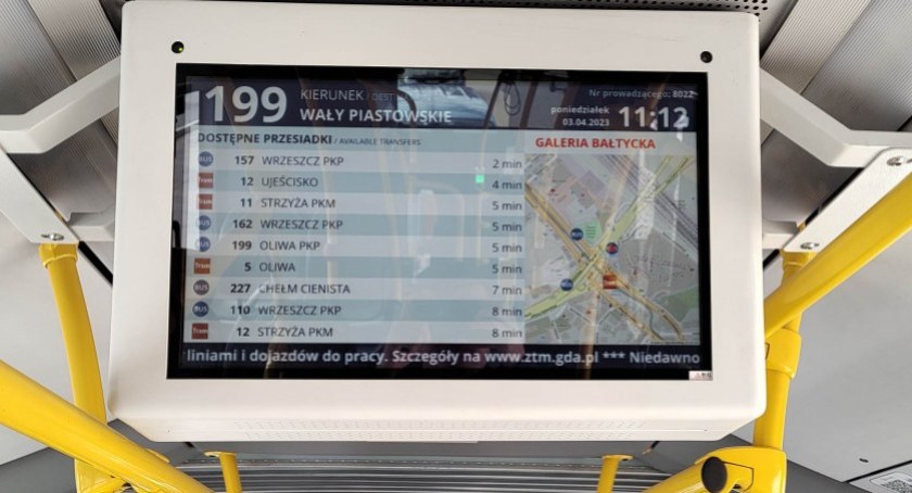 Co ważne, wyświetlacze będą prezentowały informację o odjazdach innych pojazdów z danego przystanku w czasie rzeczywistym, a nie rozkładowym. Informacje o odjazdach będą dotyczyły nie tylko autobusów i tramwajów, ale także pociągów SKM oraz pociągów na linii PKM.