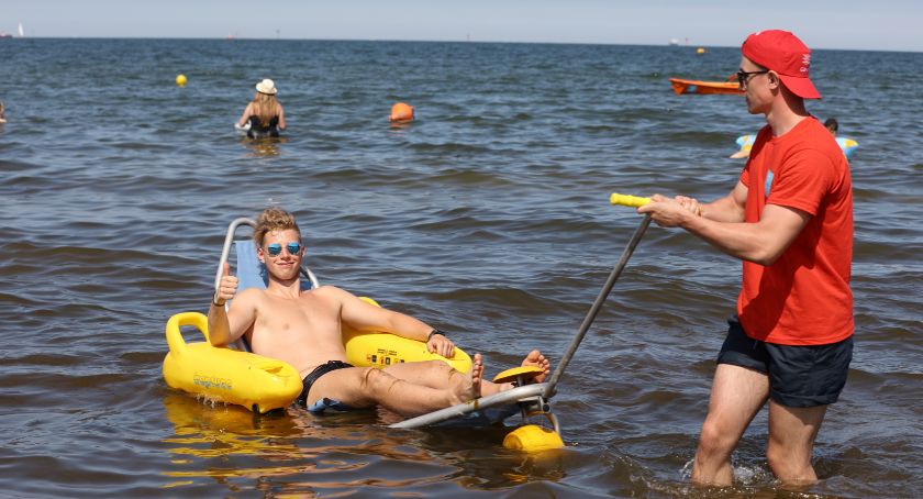 Na wyposażeniu plaży znalazła się również specjalna amfibia umożliwiająca osobom z niepełnosprawnościami kąpiel w morzu.