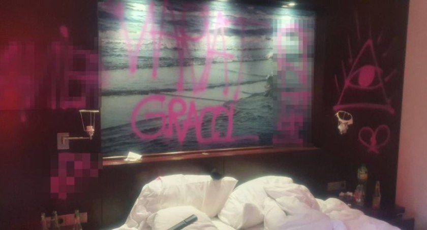 W sobotę w południe policjanci ze Śródmieścia odebrali zgłoszenie o tym, że goście zniszczyli jeden z pokojów w hotelu, powodując starty na 16 tysięcy złotych. Wandale zniszczyli wyposażenie pokoju, rozbili sedes oraz kinkiety, lampę i wagę łazienkową, pomalowali różowym sprejem ściany, drewnianą zabudowę i dywan po czym wymeldowali się z hotelu.