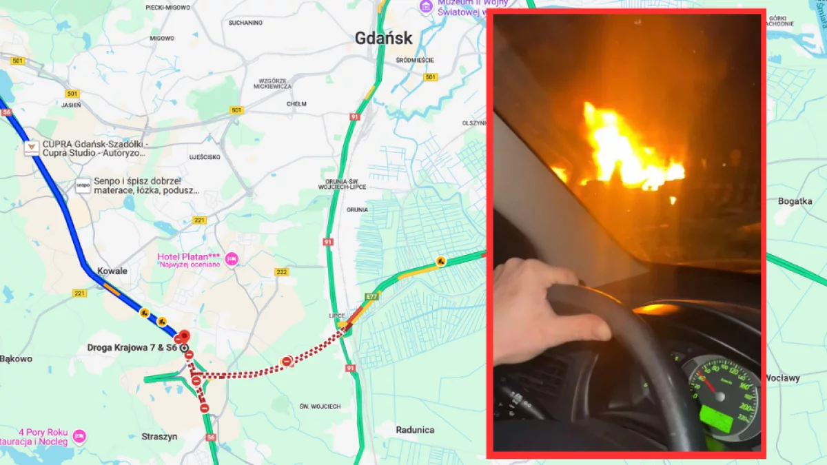 Z kolei, jak podaje serwis Pomorskie998, na skutek wypadku dwa pojazdy stanęły w ogniu. Świadczą o tym także nagrania, które w sieci zamieszczają świadkowie karambolu.