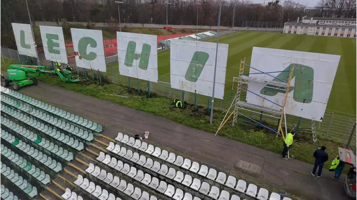 Nowy napis powstaje na płytach dibond, odpornych na promieniowanie UV, wilgoć i zmienne warunki atmosferyczne. Każda litera zostanie odtworzona ręcznie, z dbałością o detale, które dla kibiców mają ogromne znaczenie.
