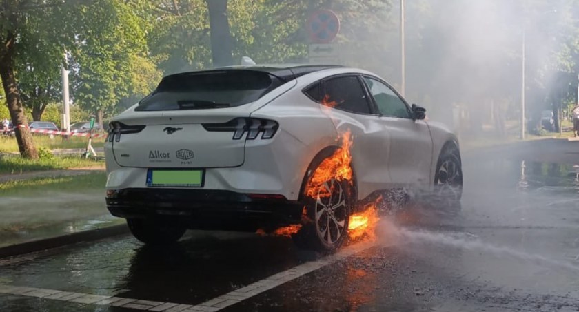 Po godzinie 16.00 doszło w niedzielę (28 maja) do pożaru elektrycznego samochodu Ford Mustang Mach-E. Pojazd zaparkowany został na jednej ze stacji stacji paliw przy ulicy Hallera. Właściciel zatrzymał tam pojazd w momencie zauważenia zadymienia.