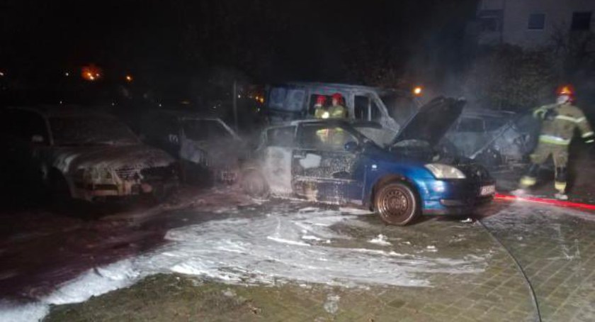 Zanim udało się ugasić pożar, zmieszczeniu uległo kilka pojazdów.