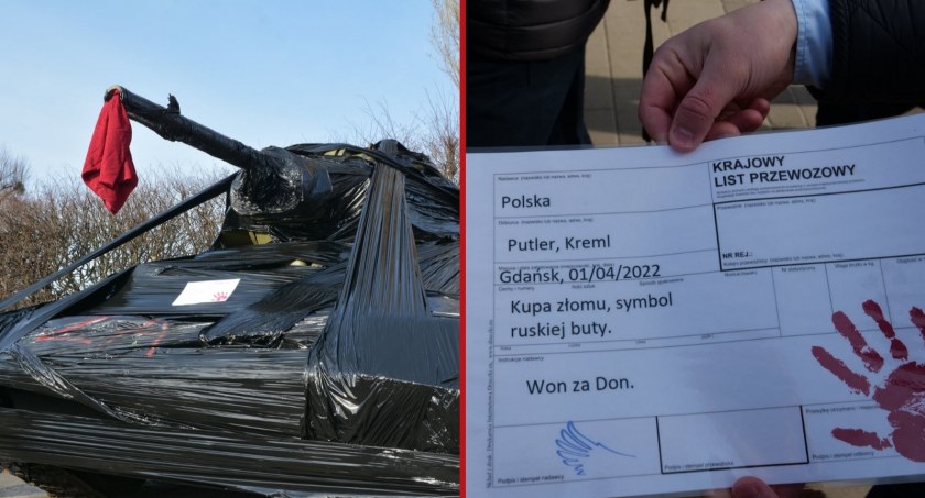 Na ofoliowanym czołgu umieszczony został list przewozowy. W polu zawartość przesyłki aktywiści wpisali "Kupa złomu, symbol ruskiej buty. Won za Don", zaś paczkę zaadresowali do Putler, Kreml.
