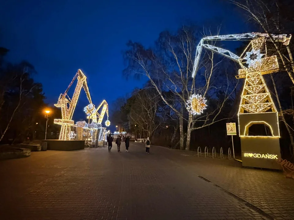 Wzdłuż nadmorskiej alejki rozmieszczono także świetlne dźwigi stoczniowe, których forma nawiązuje do historii Gdańska. W ciepłej, żółtej poświacie LED-owych instalacji Brzeźno przypomina świąteczną, nadmorską krainę – idealną do wieczornych spacerów i plenerowych zdjęć.