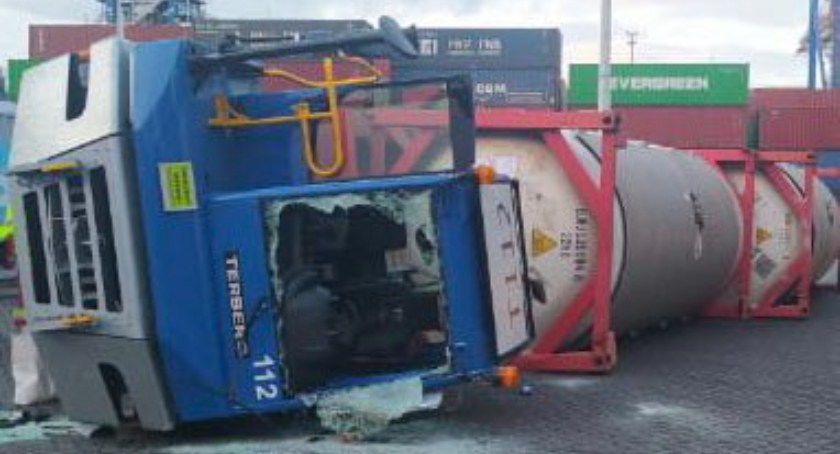 W poniedziałek po godzinie 16.00 doszło do wypadku na terenie terminalu portowego Baltic Hub w Gdańsku. Podczas prac na bok przewrócił się portowy ciągnik siodłowy. Ze wstępnych ustaleń wynika, że wykonując manewr skrętu prowadzący pojazd mężczyzna stracił nad nim panowanie, w wyniku czego doszło do przewrócenia ciągnika wraz z naczepą.