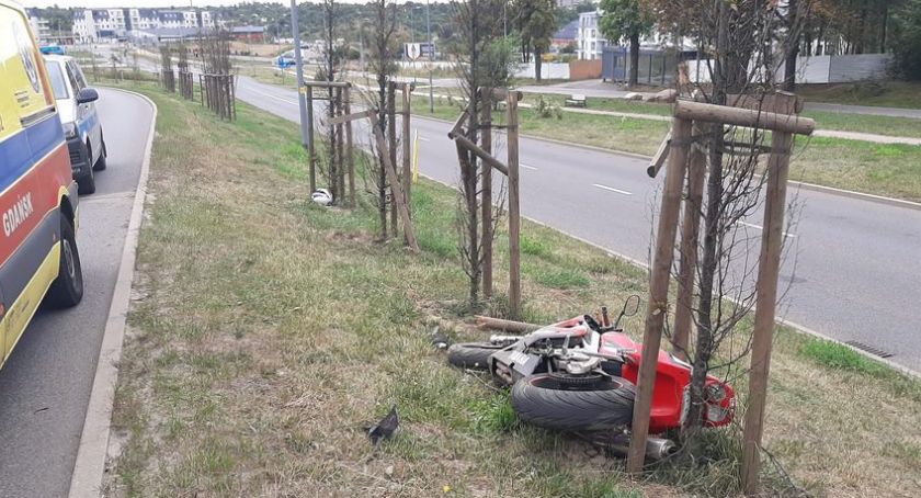 W środę po godzinie 13:00 policjanci zostali powiadomieni, że na alei Vaclava Havla doszło do zdarzenia drogowego z udziałem motocyklisty. Sprawcą okazał się 37-letni mieszkaniec Gdańska jadący motocyklem w kierunku ulicy Łostowickiej. Mężczyzna w pewnym momencie stracił panowanie nad pojazdem, zjechał do lewej krawędzi jezdni, uderzył w krawężnik i wywrócił się pojazdem, uderzając w znajdujące się na pasie zieleni podparcie drzewa.
