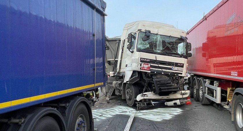 Do zderzenia 4 pojazdów doszlo około godziny 6.30 przed węzłem Port na jezdni w kierunku Elbląga. W kolizji udział brały 3 samochody ciężarowe i jedna osobówka.