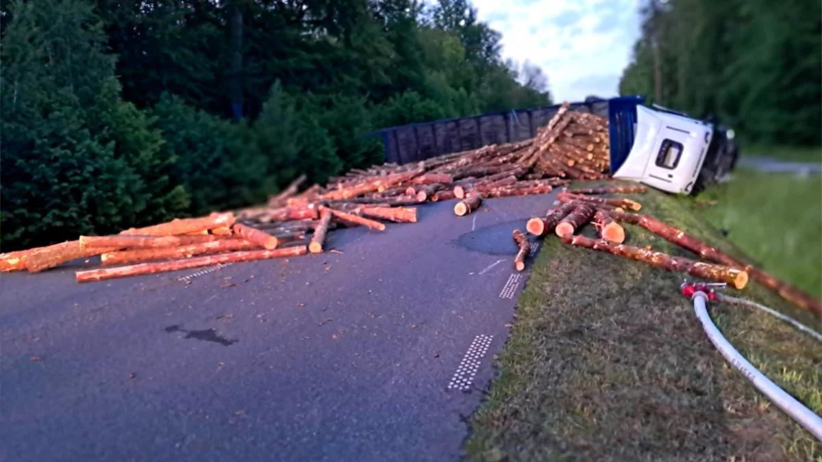 - Kierowca pojazdu ciężarowego, próbując uniknąć zderzenia, zjechał na prawe pobocze, w wyniku czego doszło do wywrócenia się zestawu ciężarowego. Ładunek drewna wysypał się na jezdnię, całkowicie blokując drogę. Utrudnienia trwały do godziny 4:00 rano - dodaje.