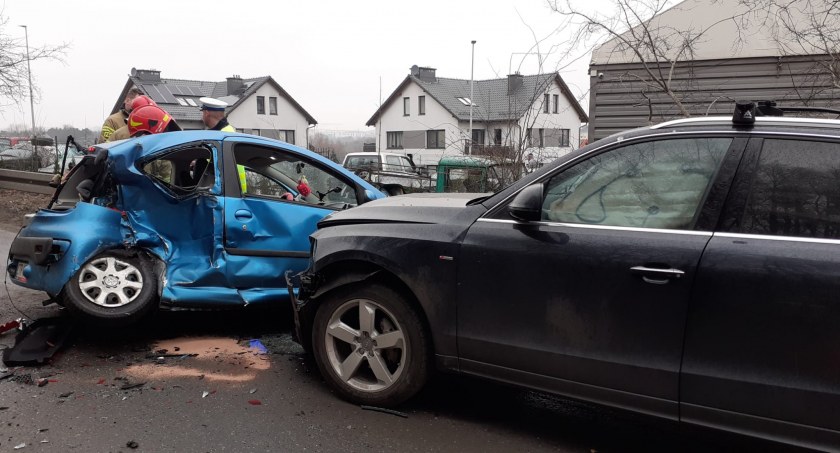 W wyniku zderzenia się dwóch samochodów osobowych poszkodowana została jedna osoba. Poszkodowana w wypadku została 20-letnia kobieta, która kierowała jednym z samochodów. Nieprzytomna została przewieziona do szpitala
