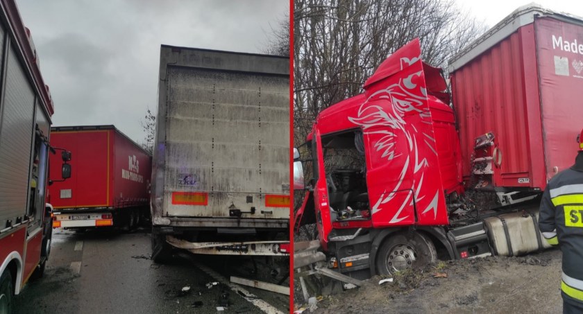 Do wypadku doszło na wysokości węzła Szadółki na jezdni w kierunku autostrady A1. W zdarzeniu udział brały dwa samochody ciężarowe.