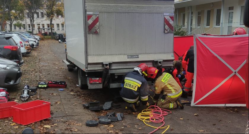 Po godzinie 15.00 samochód dostawczy potrącił tam pieszego. W wyniku zdarzenia starszy, 77-letni mężczyzna zakleszczony pod pojazdem.