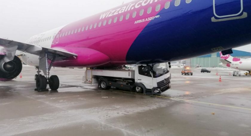 Kierowca serwisowego Mercedesa cofając uderzył w podwozie stojącego Airbusa. W samolocie nie było pasażerów, jedynie załoga pokładowa.