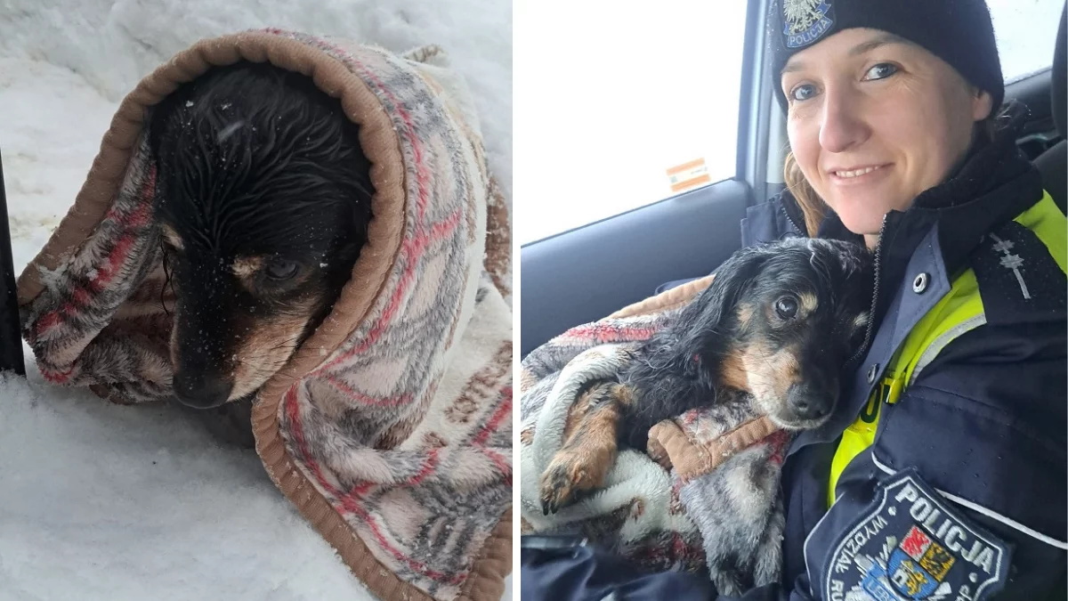 Na miejsce skierowano funkcjonariuszki ruchu drogowego z Lęborka. Kierowca pokazał im zdjęcie psa, które zdążył zrobić tuż po potrąceniu. To okazało się kluczowe. Zwierzę odnaleziono za ogrodzeniem sąsiedniej posesji. Było przysypane śniegiem, skrajnie wyziębione. Miało drgawki i bezwładne tylne łapy. Każda kolejna minuta mogła oznaczać pogorszenie stanu.