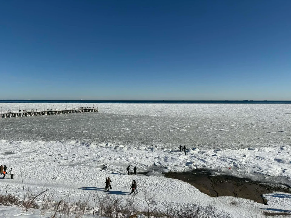 Plaża w Gdyni Orłowie przyciąga w ostatnich dniach tłumy mieszkańców i turystów. Mroźna aura sprawiła, że fragment Zatoki Gdańskiej zamarzł na długości przekraczającej molo, tworząc niezwykły, rzadko spotykany krajobraz.